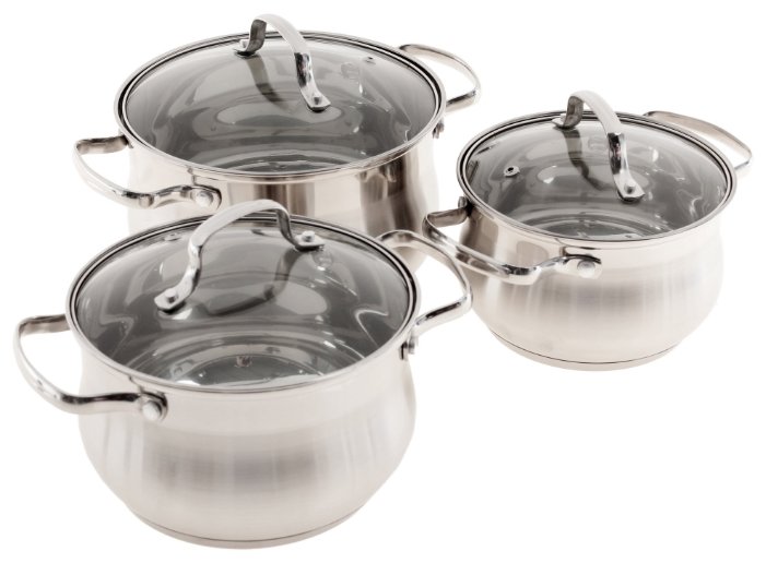 - Дополнительная информация пятислойное дно; диаметр кастрюль: 16 см, 18 см, 20 см
