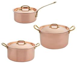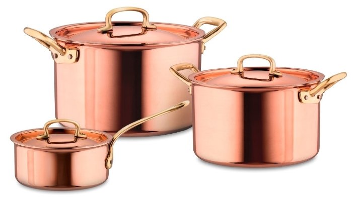 Дополнительная информациядиаметр ковша: 160 мм (арт. 25206-16), диаметр кастрюль: 200 мм (арт. 25207-20), 240 мм (арт. 25207-24); диаметр крышек 160 мм, 200 мм, 240 мм; бронзовые ручки; внутренняя поверхность посуды выполнена из нержавеющей стали; для использования на индукционных плитах нужен специальный адаптер