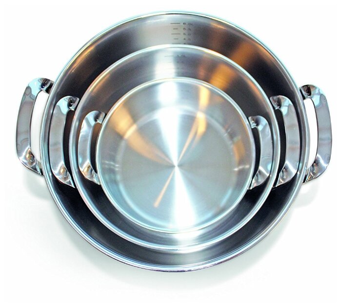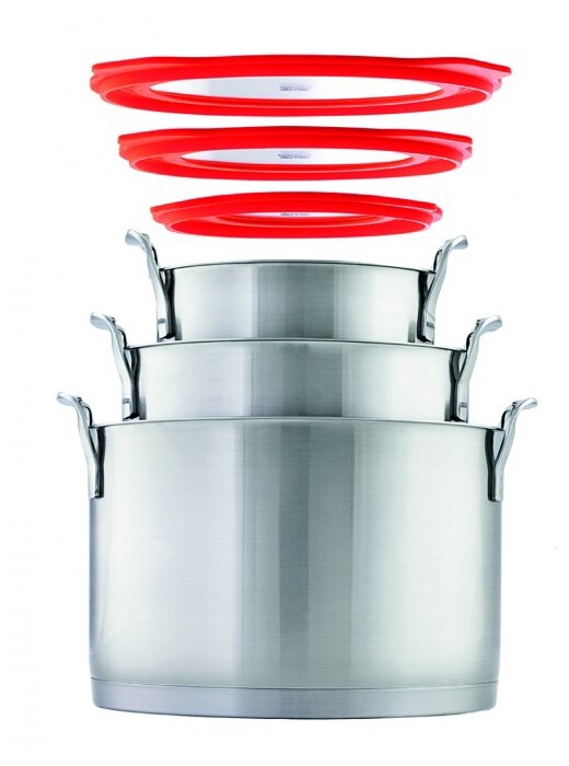 • Подробная комплектация кастрюли: 1.5 л, 3.5 л, 6.5 л; 3 крышки