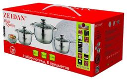 - Дополнительная информация девятистеповое капсулированное дно; комбинированная полировка снаружи, зеркальная полировка внутри; диаметр кастрюль: 180 мм, 200 мм, диаметр ковша: 160 мм; высота стенок кастрюль: 110 мм, 125 мм, высота стенок ковша: 100 мм; упаковка – подарочная коробка с пластиковой ручкой