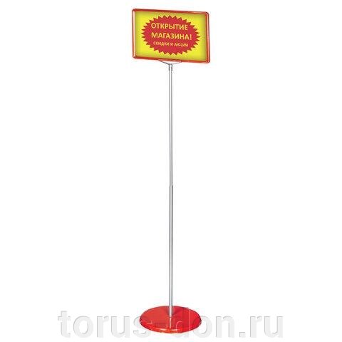 Стойка-инфодержатель напольная (ценникодержатель), 210x300 мм, А4, сталь, КРАСНАЯ, BRAUBERG, 291036