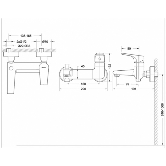 Смеситель для ванны c коротким изливом Bravat Vega F6119177CP-01