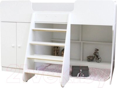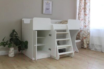 Кровать-чердак детская Можга Капризун 2 со шкафом / Р441