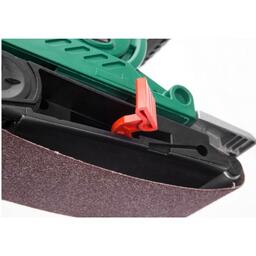 Шлифовальная лента закрепляется рычагом. Не нужны дополнительные инструменты для замены оснастки.