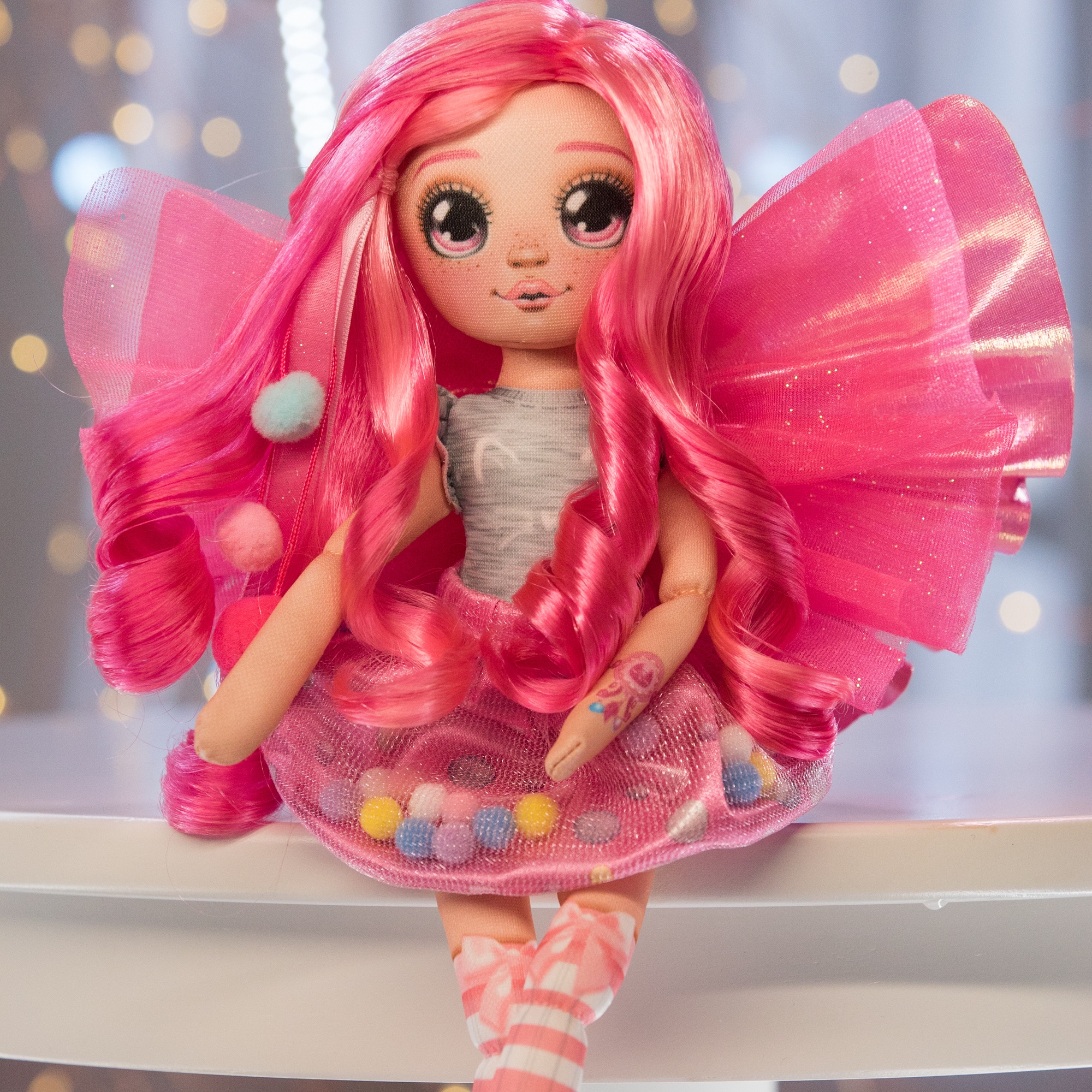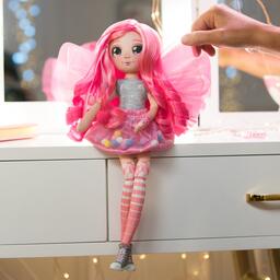 Komplekte1 pliušinė lėlė (su plaukais, sparnais, plaukų aksesuarais), 1 batų rinkinys, 1 minkštos medžiagos sijonas, 1 plaukų aksesuaras