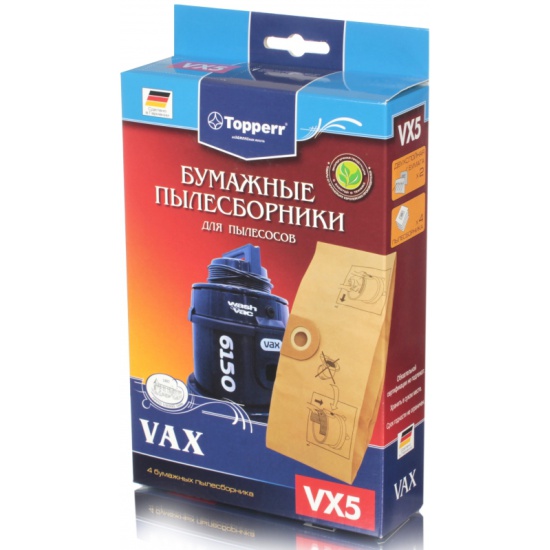 Бумажные пылесборники VX 5 для пылесосов VAX изготовлены из экологически чистой двухслойной бумаги, соответствующей европейскому стандарту качества, задерживают 99% пыли, продлевая срок службы пылесоса, сохраняют чистоту воздуха и устраняют вредные бактерии. Модели и серии пылесосов