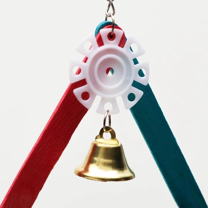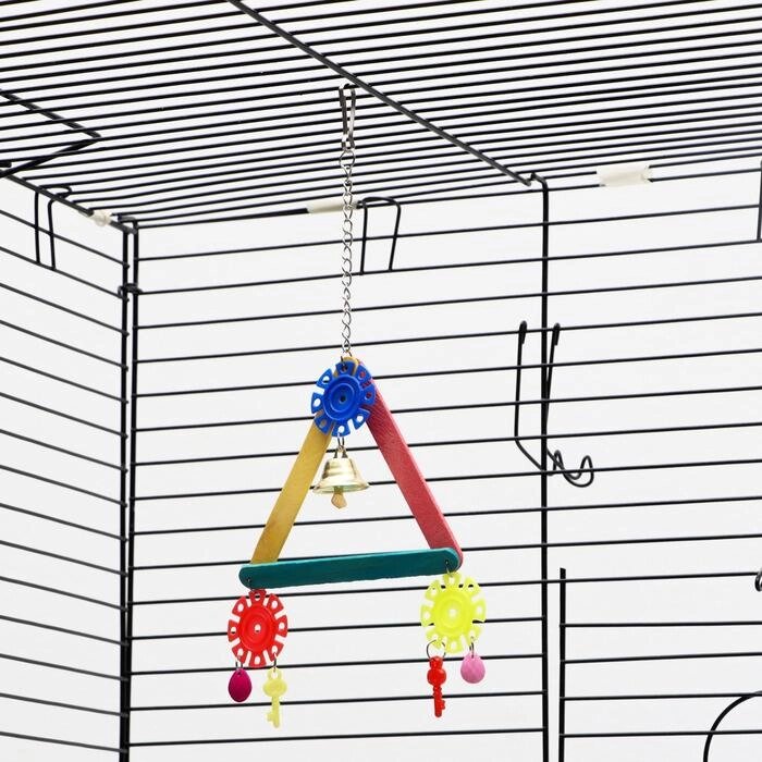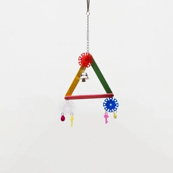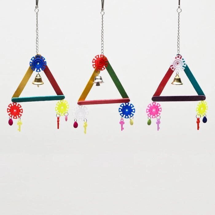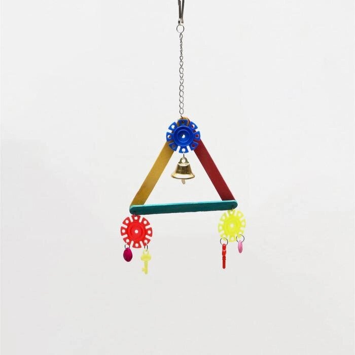 Игрушка для птиц "Разноцветный треугольник", с колокольчиком, микс