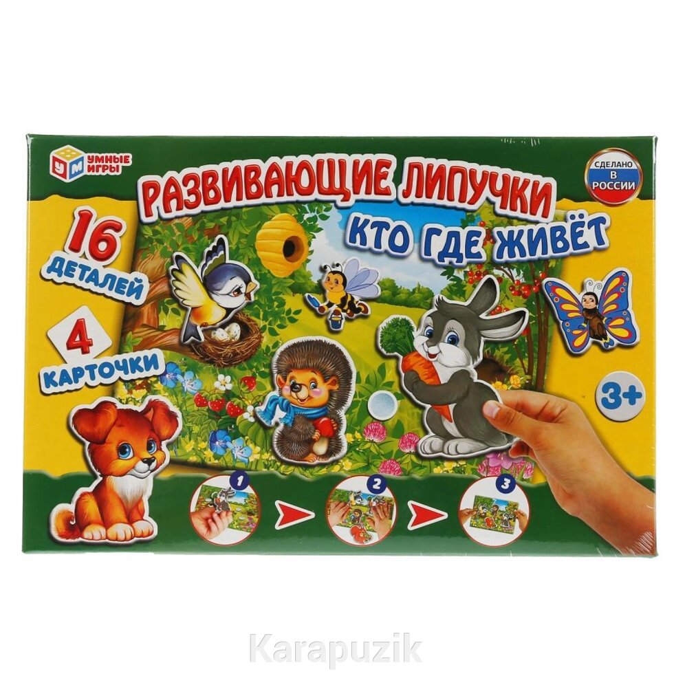 РАЗВИВАЮЩАЯ ИГРА С ЛИПУЧКАМИ "УМНЫЕ ИГРЫ" КТО ГДЕ ЖИВЕТ В КОР. SIM-4690590231159