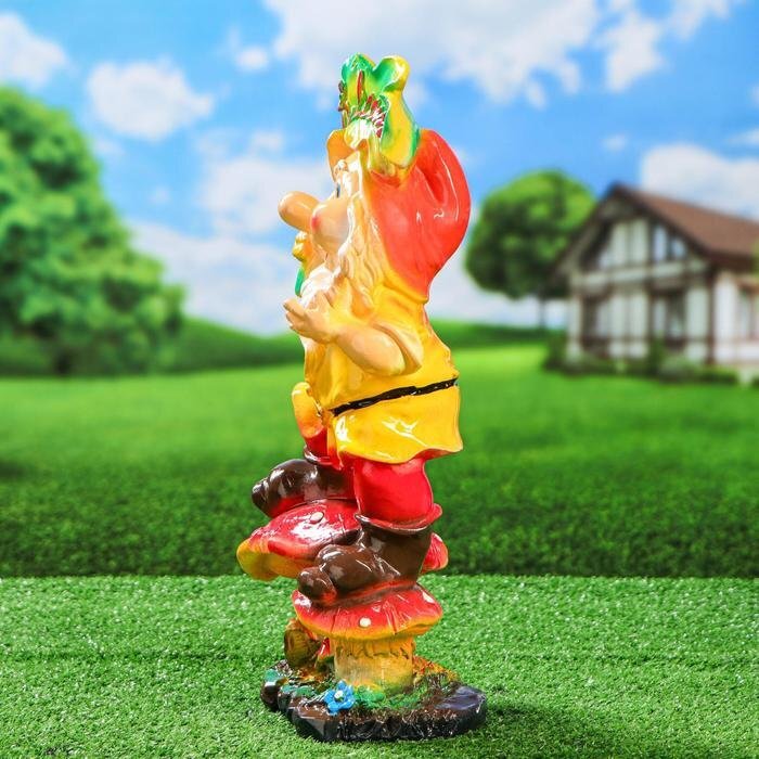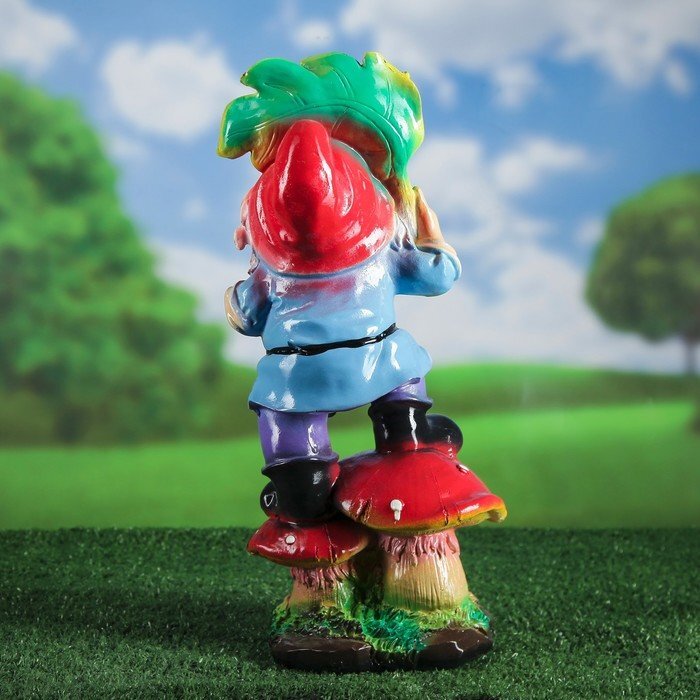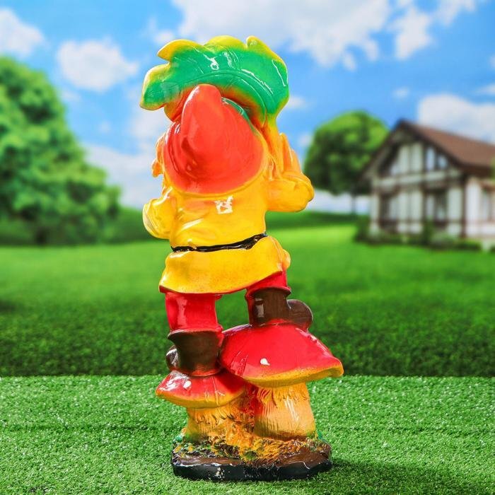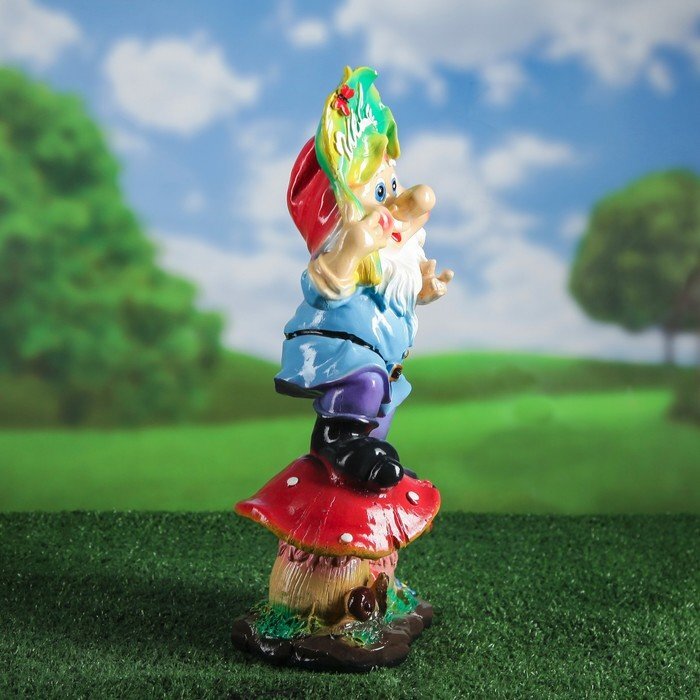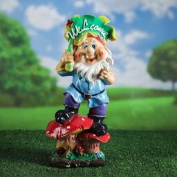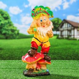 Садовая фигура "Гном с листочком Welcome", разноцветный, 42 см, микс