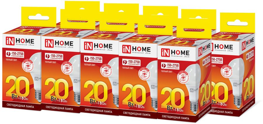 Лампа светодиодная Inhome LED-A60-VC 20Вт цок.:E27 груша 220B 3000K св.свеч.бел.теп. A60 (упак.:10шт)
