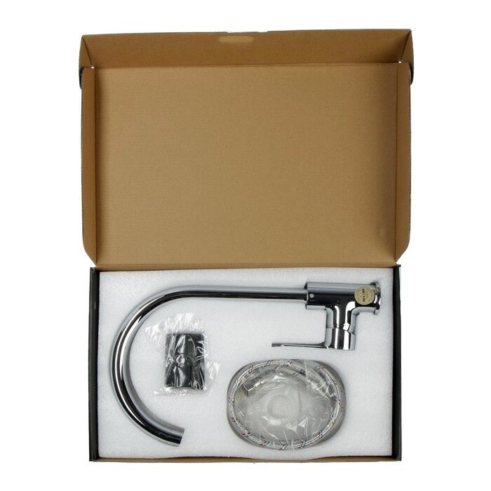 Смеситель для кухни AFLORN "Caen", хром, с поворотным изливом, с гайкой, подводка 60см