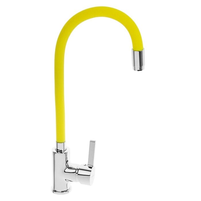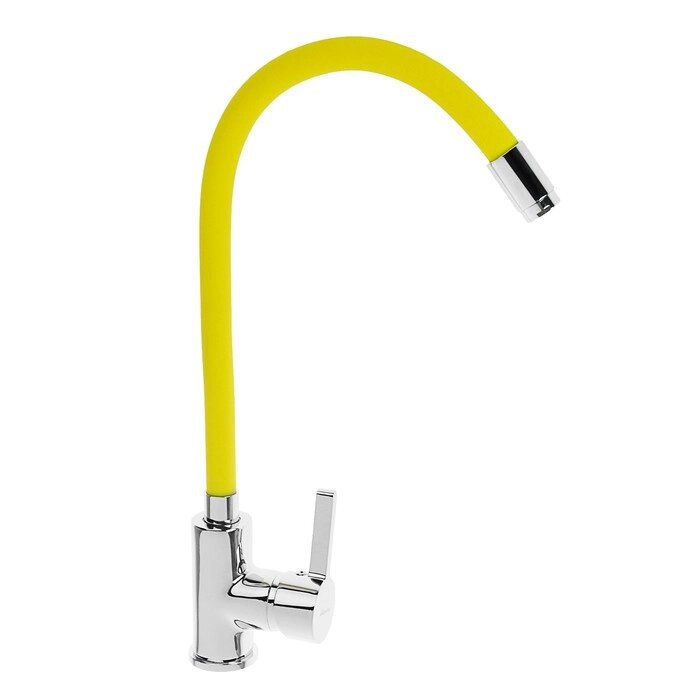 Смеситель для кухни Accoona A9890H, однорычажный, с силиконовым изливом, жёлтый/хром