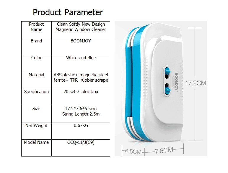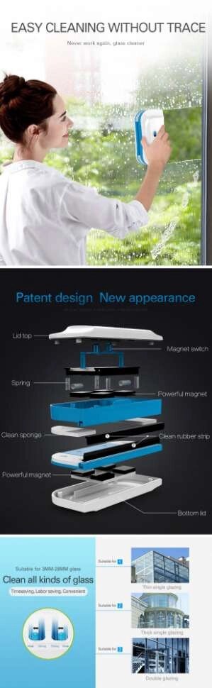 Магнитная щетка для мытья окон с двух сторон C9 Pro Boomjoy JY8852