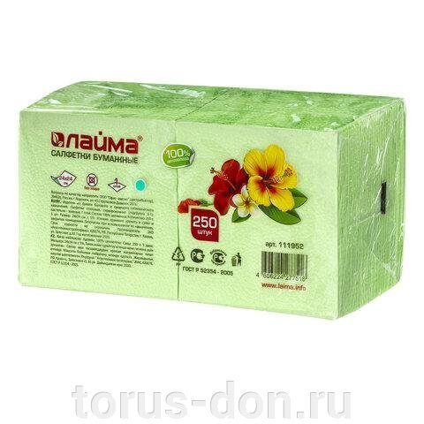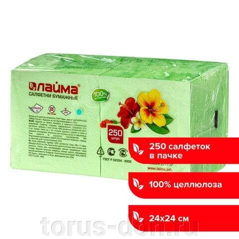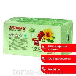 Салфетки бумажные, 250 шт., 24х24 см, LAIMA/ЛАЙМА, зеленые (пастельный цвет), 100% целлюлоза, 111952