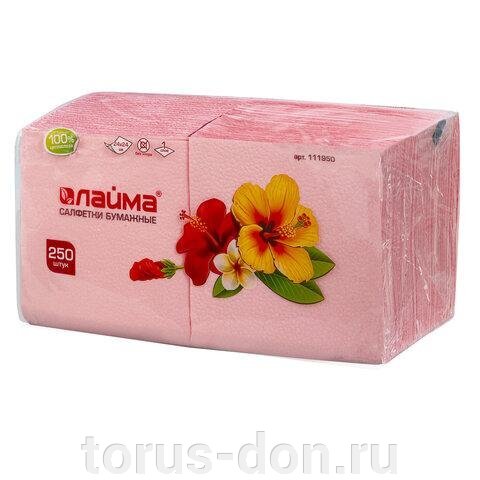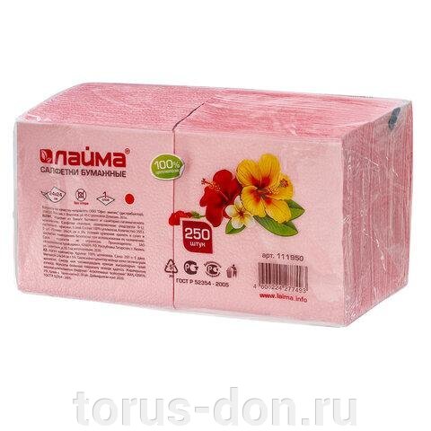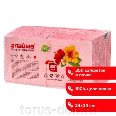 Салфетки бумажные, 250 шт., 24х24 см, LAIMA/ЛАЙМА, красные (пастельный цвет), 100% целлюлоза, 111950