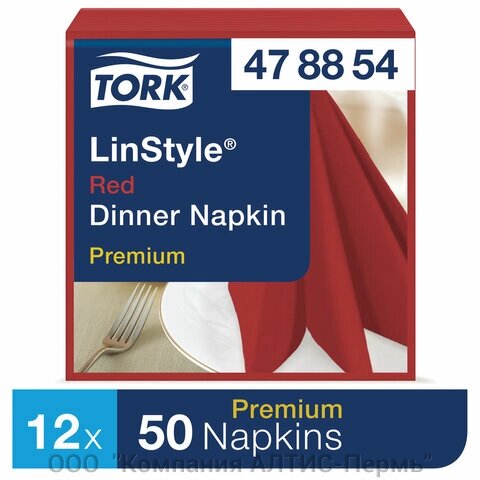 Салфетки бумажные нетканые сервировочные TORK LinStyle Premium, 39х39 см, 50 шт., красные, 478854