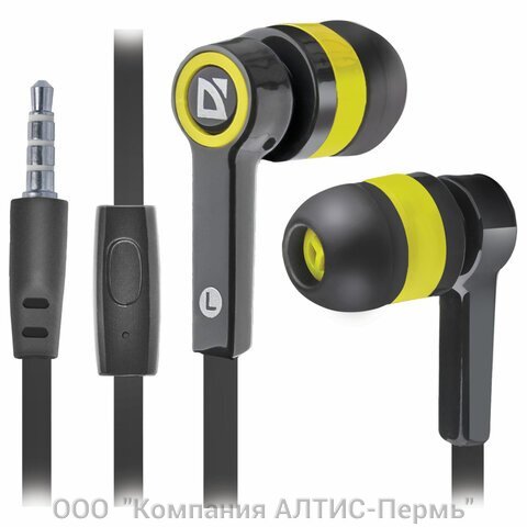 Наушники с микрофоном (гарнитура) вкладыши DEFENDER Pulse 420, проводные, 1,2 м, вкладыши, черные с желтым