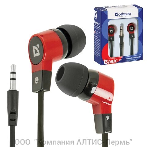 Наушники DEFENDER Basic 619, проводные, 1,1 м, вкладыши, черные с красным