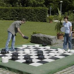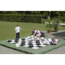 - Дополнительная информация Didelių šaškių rinkinys (12 baltų, 12 juodų). Šaškės matmenys: 25x25x9 cm