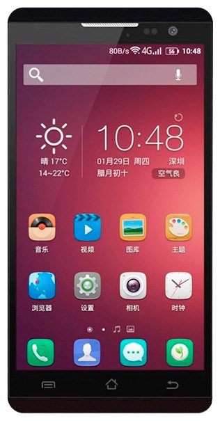 2 SIM, Android, экран 5 ", IPS, 720х1280, Mediatek MT6582, оперативная память 2 Гб, встроенная память 16 Гб, камера 8 Мп, аккумулятор 3000 мАч.