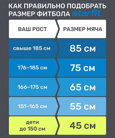 Фитбол STARFIT Core GB-104 - это гимнастический мяч бренда Starfit, с помощью которого можно тренировать все мышцы тела, правильно выстроив тренировочный процесс и используя его как основной или второстепенный снаряд при выполнении упражнений (создавая за счет него лишь синергизм действия). Фитбол от Starfit – незаменимый и один из самых популярных аксессуаров в фитнесе. Его используют как женщины, так и мужчины в функциональном тренинге, бодибилдинге, групповых программах, стретчинге (растяжке).
