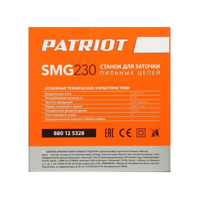 Станок для заточки цепи PATRIOT SMG 230, 85 Вт, 220 В, 5000 об/мин, угол 35°104х3.2х22 мм