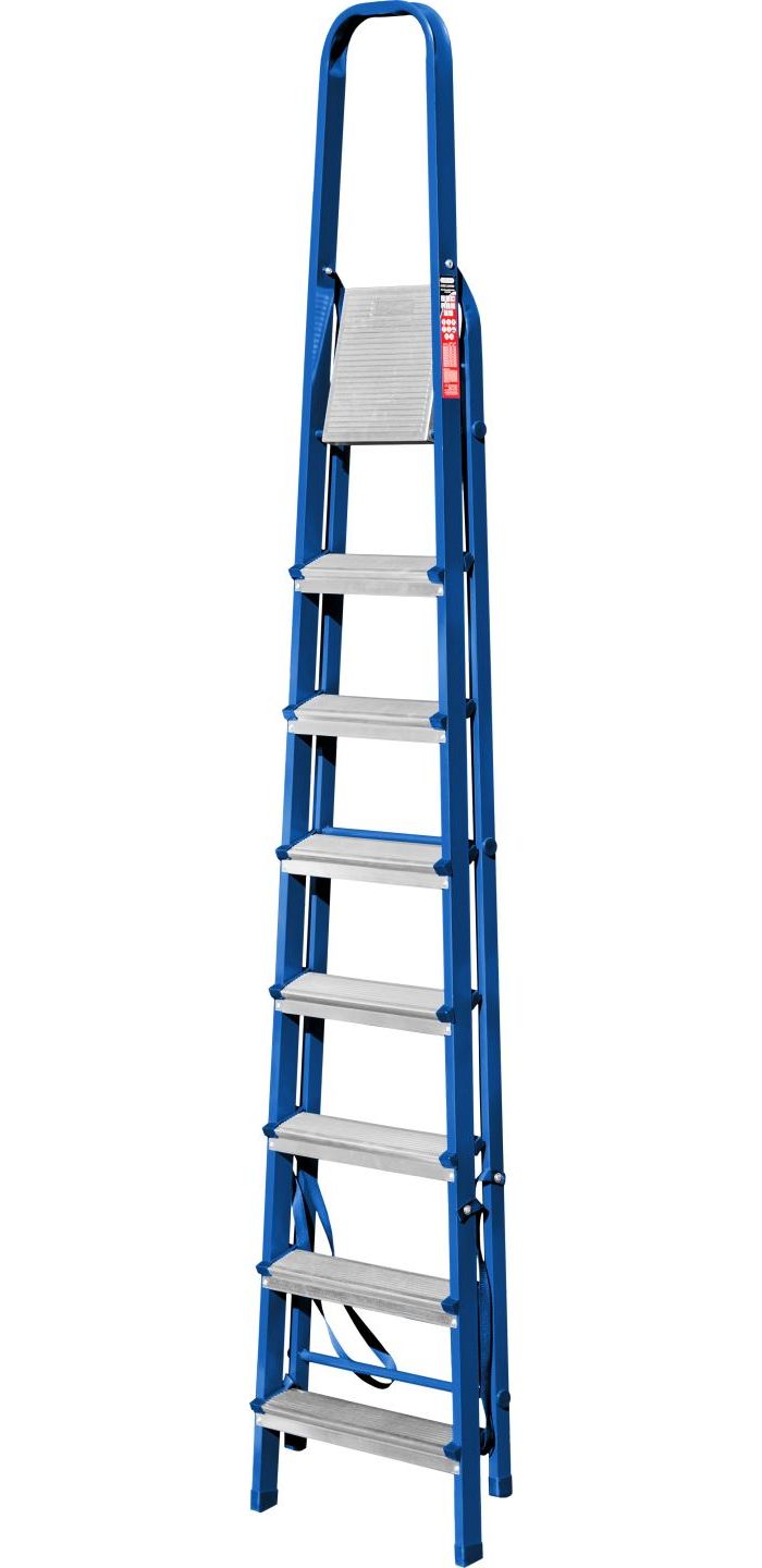 Стальная лестница-стремянка MIRAX 8 ступеней, 162 см 38800-08 применяется на производстве и в быту. Снабжена широкими ступенями для удобства при подъёме и спуске. Благодаря наличию высокой дуги работник может безопасно выполнять различные высотные работы. Пластиковые заглушки на ножках препятствуют скольжению.