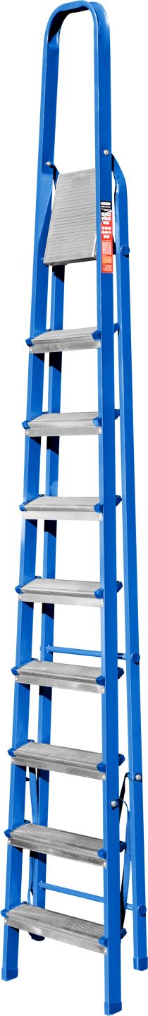 Стальная лестница-стремянка MIRAX 9 ступеней, 182 см 38800-09 применяется на производстве и в быту. Снабжена широкими ступенями для удобства при подъёме и спуске. Благодаря наличию высокой дуги работник может безопасно выполнять различные высотные работы. Пластиковые заглушки на ножках препятствуют скольжению.