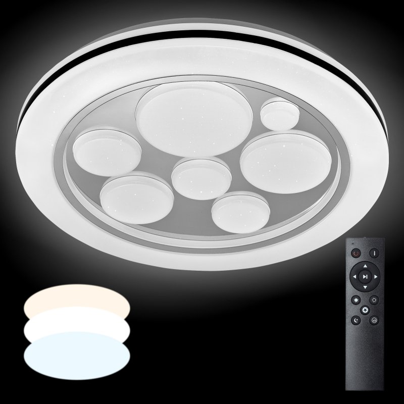 Светодиодный диммируемый светильник предназначен для основного освещения помещений. Подходит для использования в квартирах, офисах, кафе, гостиницах и т.д. Оснащен возможностью изменения освещения («теплый» свет (3000К), «дневной» свет (4500К), «холодный» свет (6000К)) и плавной регулировкой яркости. Управление функциями производится с помощью пульта дистанционного управления, входящего в комплект поставки, либо с помощью выключателя. Конструктивное исполнение и материалы предотвращают перегрев светильника и обеспечивают длительный срок службы. На продукции отсутствуют штриховые коды. Просим это учесть при приобретении товара. НОВИНКАНОВИНКАСтрана происхожденияРОССИЯТорговая маркаRDC