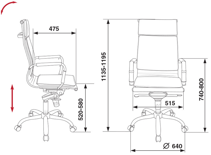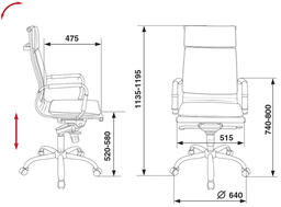 • Высота кресла MIN 1135 мм