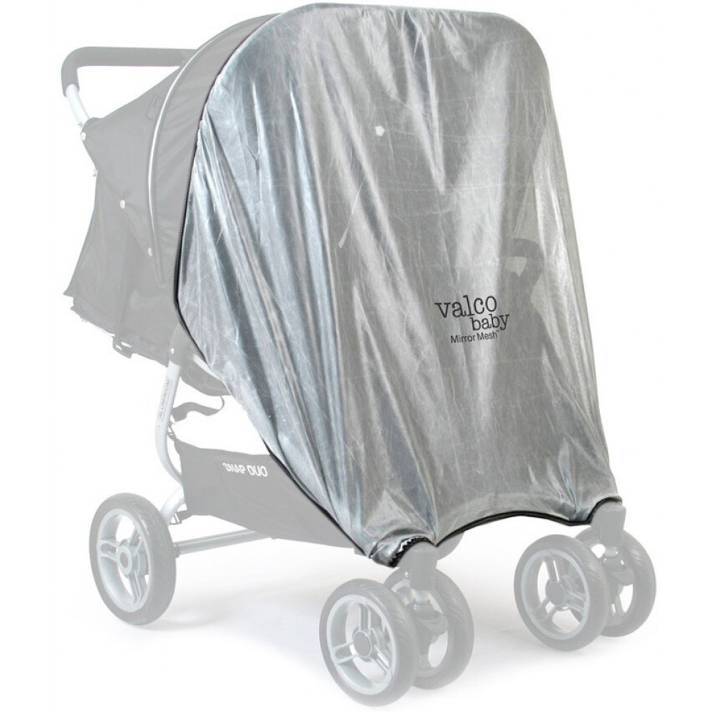 Москітна сітка Valco Baby Mirror mesh Two Hoods / Snap Duo - захистить дітей від настирливих комах, пуху і пилу, а також яскравих сонячних променів, не дозволивши їм зіпсувати прогулянку на свіжому повітрі. Сітка не перешкоджає циркуляції повітря, забезпечуючи підтримку комфортного мікроклімату в колясці. Антимоскітна сітка Valco Baby для коляски Snap Duo виконана з фірмової сріблистої сітчастої тканини, захищає не тільки від комарів, але й від сонячних променів. Кріпиться до козирка за допомогою блискавки і знизу за кріплення коліс, не залишаючи зазору.