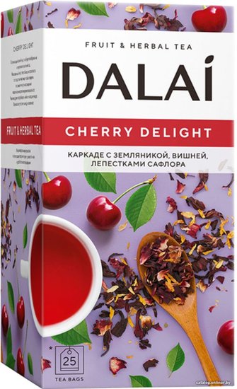 - Состав лепестки суданской розы (каркаде), плоды земляники сушеные, лепестки сафлора, плоды вишни сушеные, ароматизатор "вишня" и "миндаль"