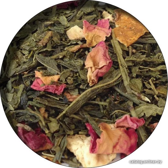 - Состав зелёный чай, лепестки розы, лепестки василька, цедра лимона, натуральные ароматизаторы