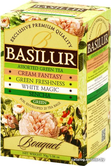 - Состав - Cream Fantasy: Cream Fantasy - зеленый цейлонский байховый с клубничным и ванильным ароматом- Green Freshness: зеленый чай, лепестки вербены и ароматизатор мяты (ненатуральный) - Sencha: чай зелёный китайский байховый листовой- White magic: чай зелёный китайский байховый листовой, чай зелёный цейлонский байховый листовой, ароматизатор молока