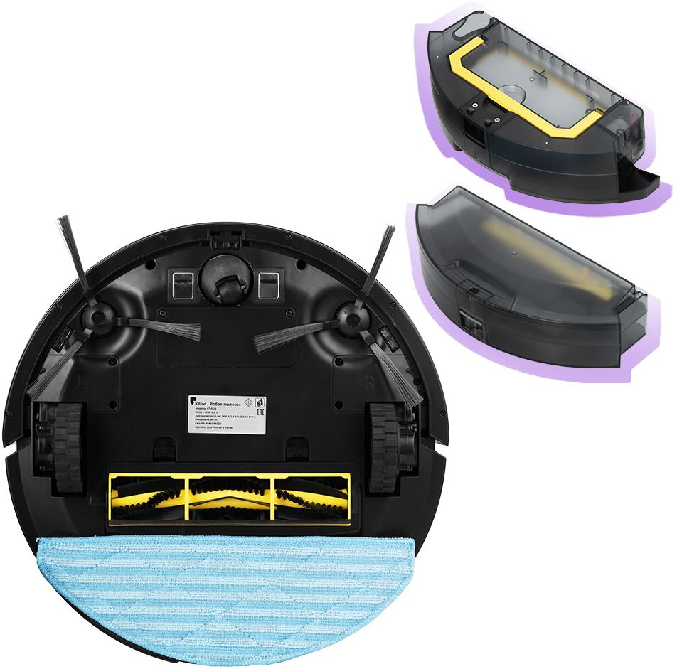 ОсобенностиУправление уборкой через мобильное приложение Smart Life. Построение карты помещения и отображение в мобильном приложении. Турбощётка и боковые щётки для тщательной уборки. Влажная уборка благодаря съёмному моющему модулю с резервуаром для воды и тряпкой. Автоматическая зарядка от базы.