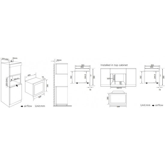 Компактные размеры устройства позволят установить данную микроволновую печь даже в верхние навесные шкафы, открывая при этом новые возможности организации пространства на вашей кухне! Для встраивания этой модели достаточно всего лишь ниши с габаритами 568 х 303 х 365 мм, что действительно очень удобно!