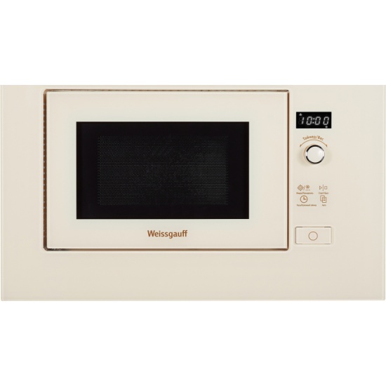 Встраиваемая микроволновая печь Weissgauff в бежевом цвете равномерно разогревает еду без поворотного стола, благодаря системе Spiegel и биокерамическому покрытию White Flat Ceramic.