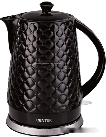 Электрочайник CENTEK CT-0061 черный предназначен для подогрева и кипячения воды, приготовления горячих напитков. Корпус изготовлен из керамики. Закрытый нагревательный элемент обеспечивает равномерный обогрев. Функция защиты от включения без воды поможет предотвратить выход из строя чайника по невнимательности. Подсветка кнопки включения. База с отсеком для хранения шнура.