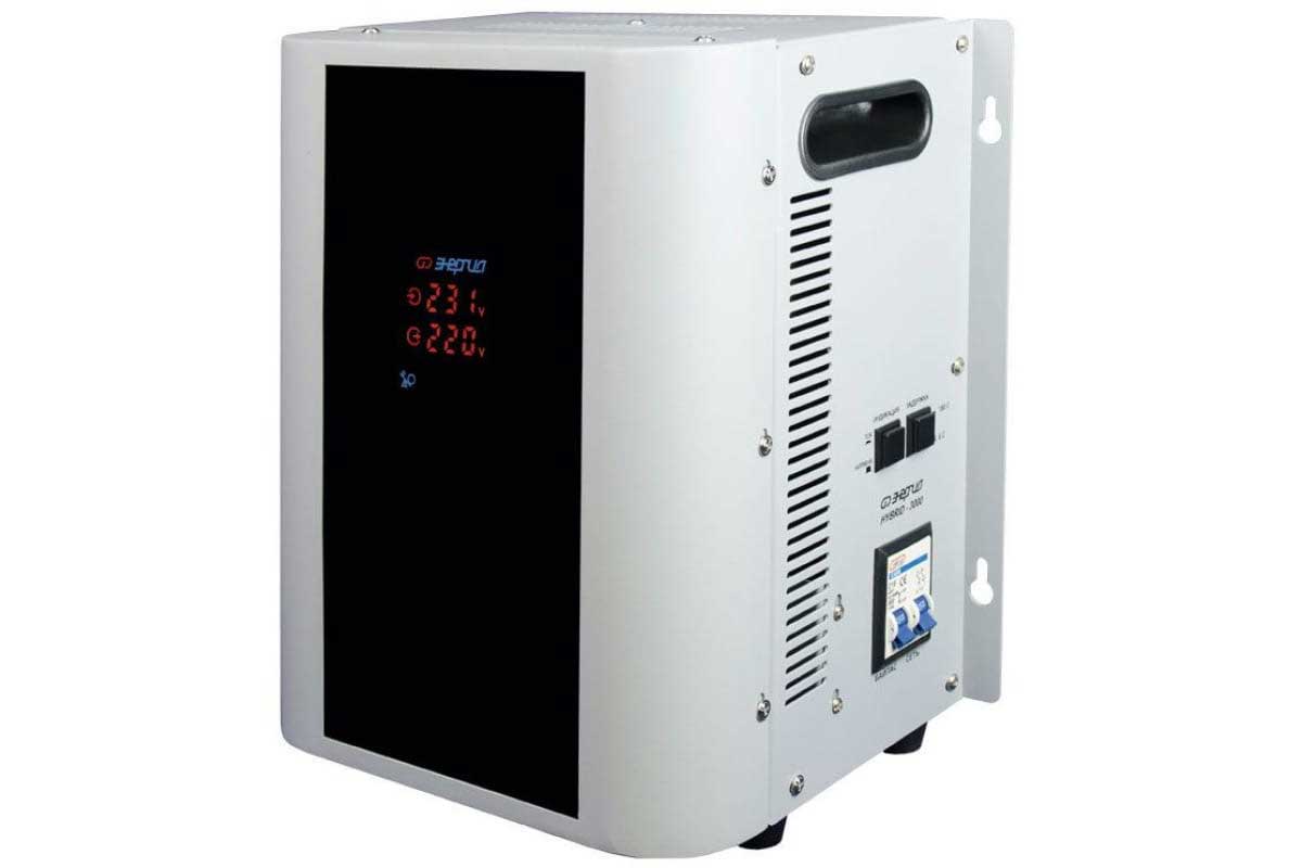 Стабилизатор (навесной) Энергия Hybrid - 3000 Е0101-0148 имеет небольшие размеры и достаточную мощность для поддержания работоспособности холодильника, телевизора или котла отопления. Конструкцию можно расположить на стене или на полу. Простое управление обеспечивает эффективность работы. Некоторые функции устройства можно регулировать с целью увеличения срока службы стабилизатора: погрешность напряжение, скорость реакции на изменения напряжения. Гибридная система регулирования включает в себя сервопривод и релейную систему.