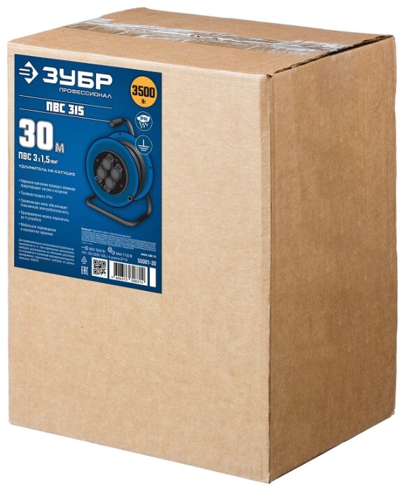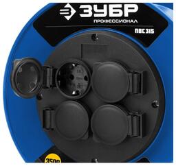 ЗУБР Удлинитель силовой на пластиковой катушке ПВС 315 3х1.5 30 м,16А, 4 розетки, с з/к, IP44