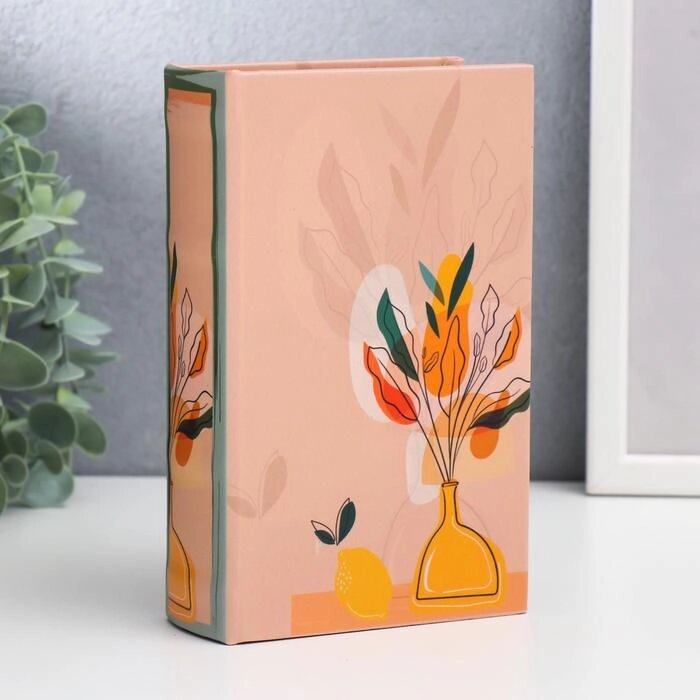 Сейф-книга дерево кожзам "Цветы в вазе на столе с лимоном" 17х11х5 см