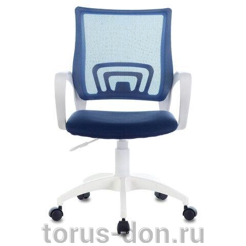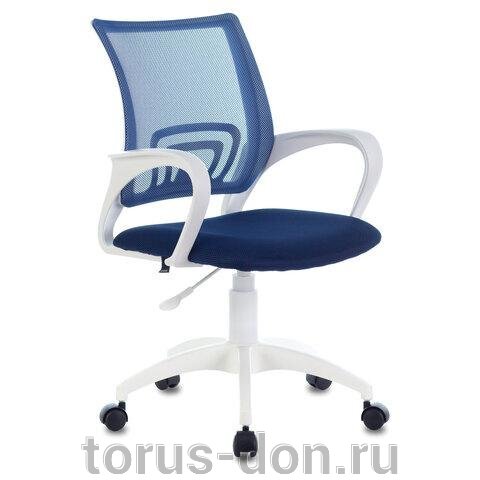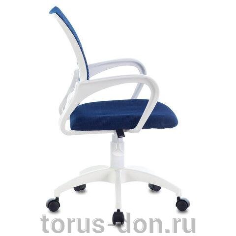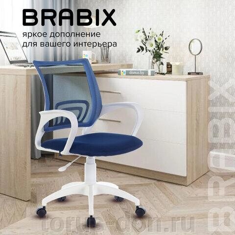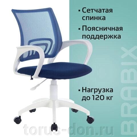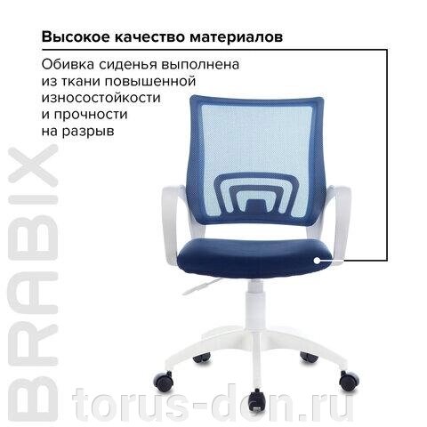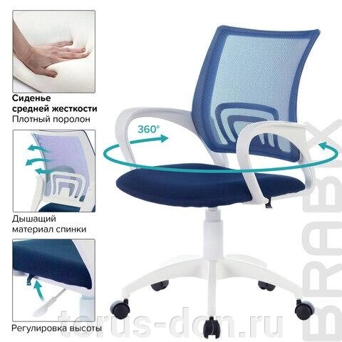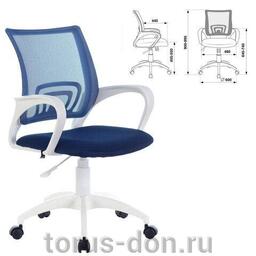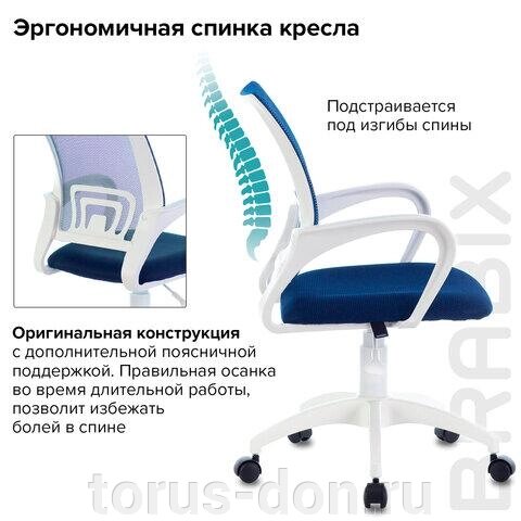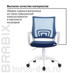 Кресло BRABIX "Fly MG-396W", с подлокотниками, пластик белый, сетка, темно-синее, 532399, MG-396W_532399