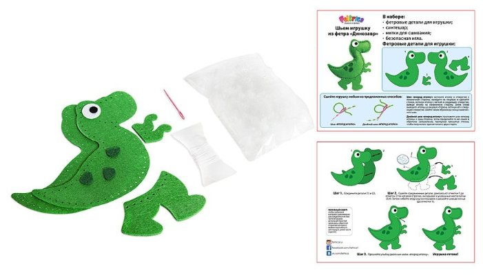 - Подробная комплектация детали из фетра, нитки, внутренний наполнитель, игла, инструкция