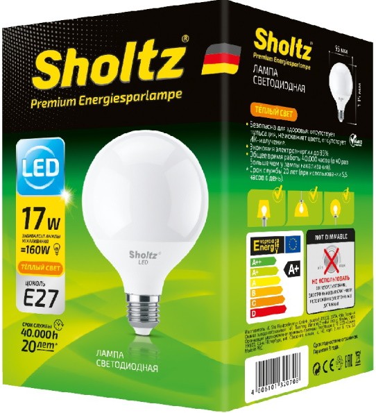 Лампочки Sholtz G95 17W 2700K E27 LEG3207