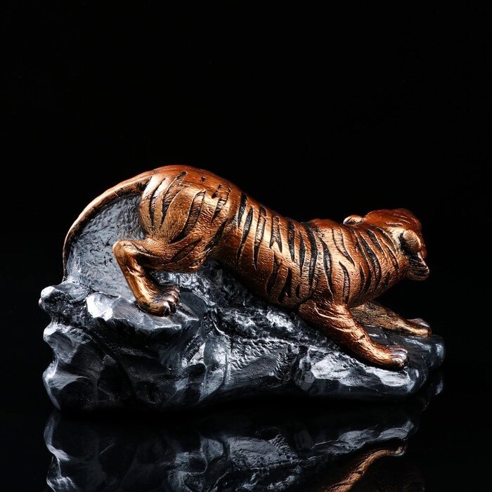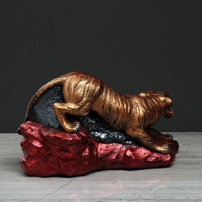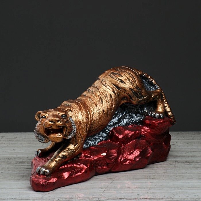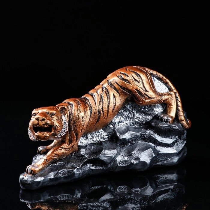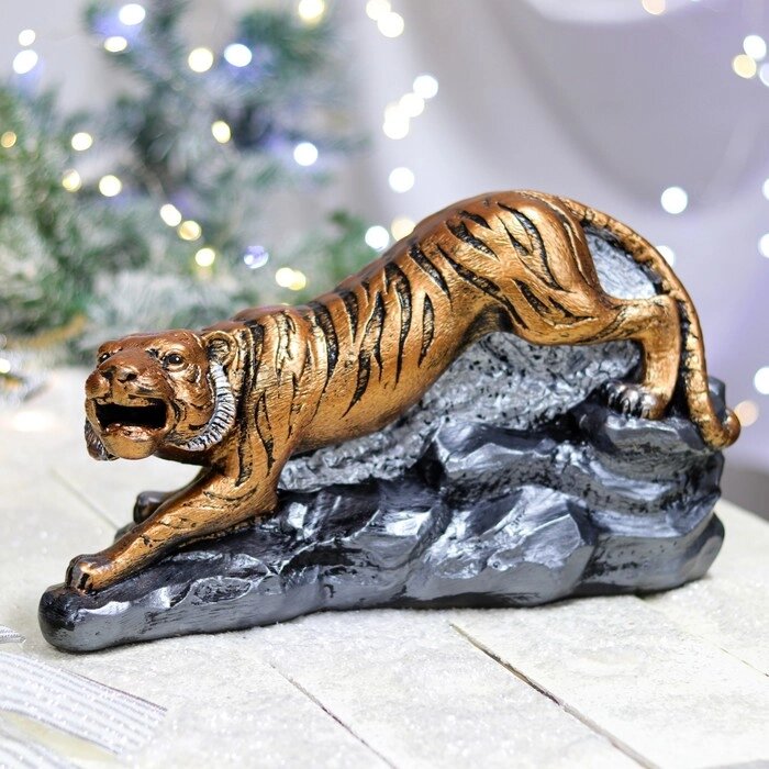 Статуэтка "Тигр на камнях", символ года 2022, бронзовый цвет, гипс, 35 см, микс