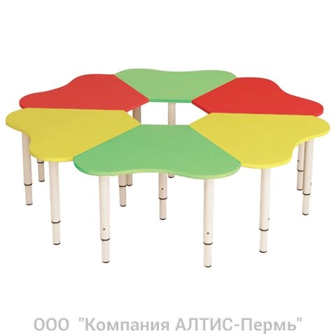 Стол детский Ромашка, 6 лепестков, 1300х1300х400-580 мм, регулируемый, рост 0-3 (85-145 см), 3 цвета