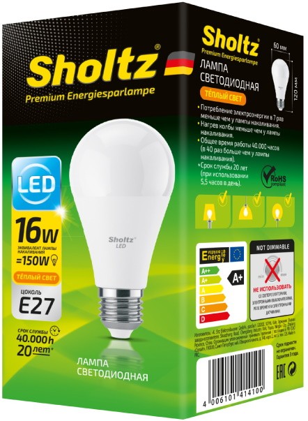 Лампочки Sholtz A60 16W 2700K E27 LOB4141