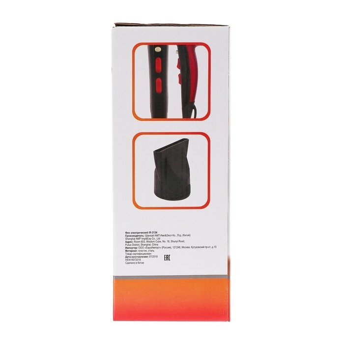 Фен Irit IR-3134, 1800 Вт, 2 скорости, 3 температурных режима, концентратор, чёрно-красный