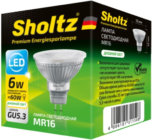 Лампочки Sholtz 6W 4000K GU5.3 LMR3115