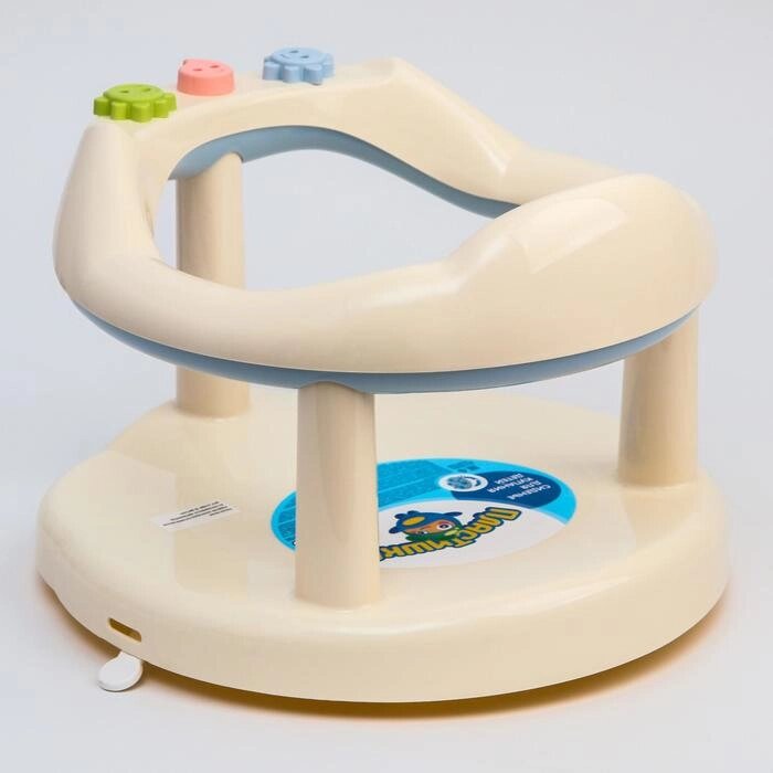 Дополнительноp Стульчик в ванну предназначен для малышей, которые научились сидеть самостоятельно. Изделие поддерживает спинку ребёнка и обеспечивает безопасность во время купания. Страховочный обод и паховый ограничитель удерживают кроху от падения или соскальзывания